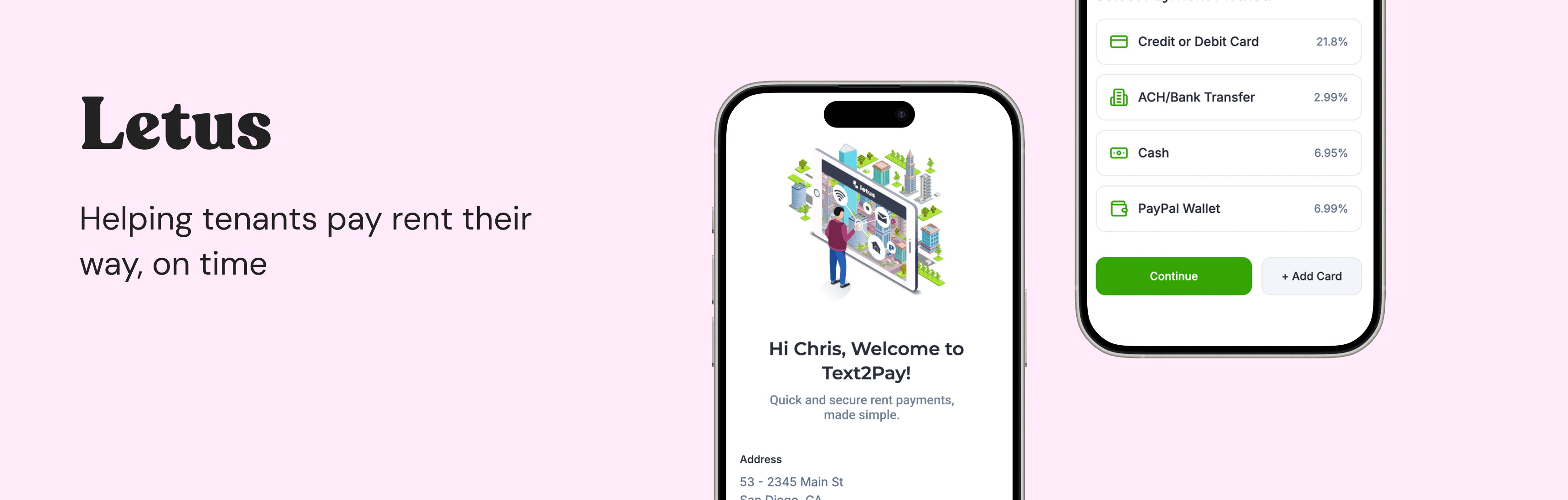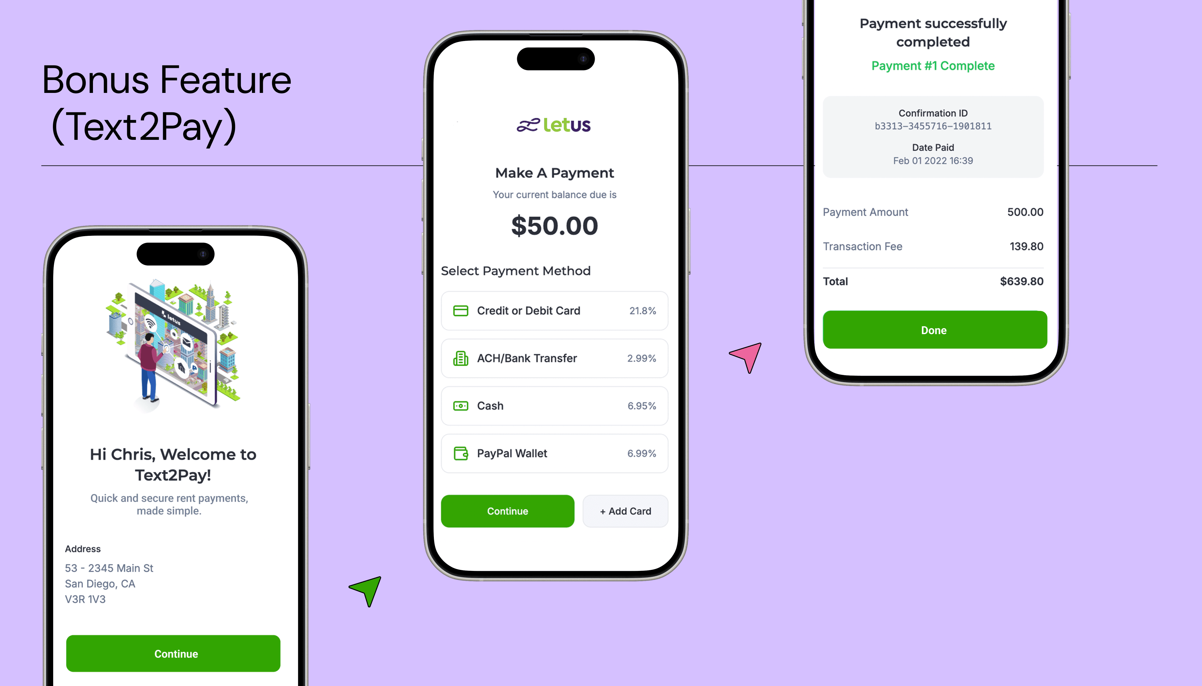 Letus is a SaaS platform that helps tenants and landlords manage rent, payments, and communication. I led UX research and product design, creating flexible solutions like Smartpay and Text2Pay to ease financial strain for tenants and ensure on-time payments for landlords.