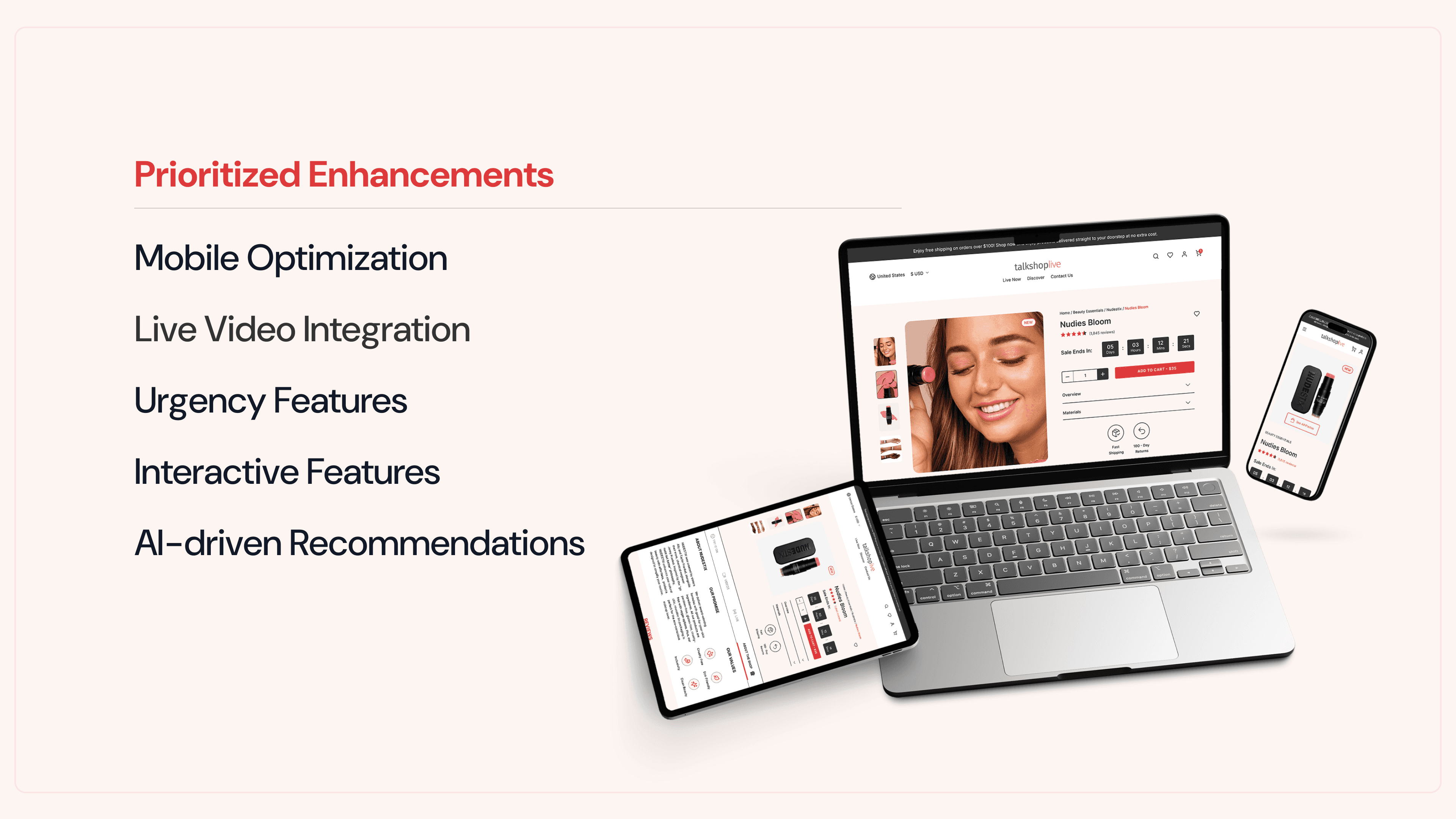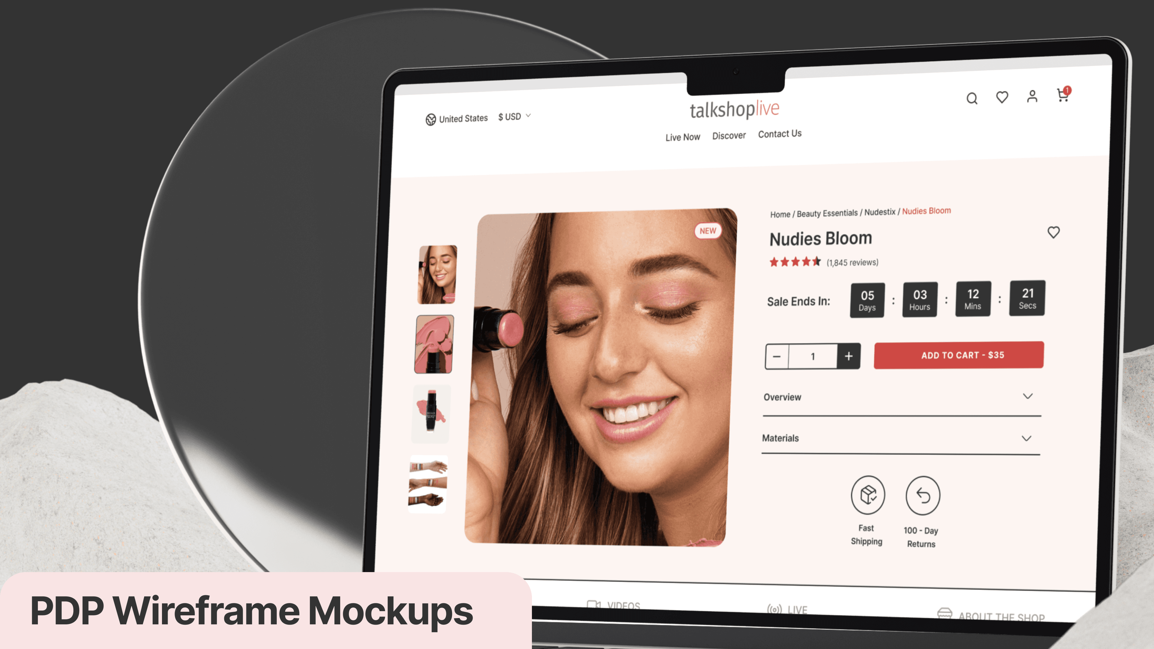 A redesign of TalkShopLive’s Product Details Page aimed at improving engagement, urgency, and buyer confidence by integrating video and interactive features.